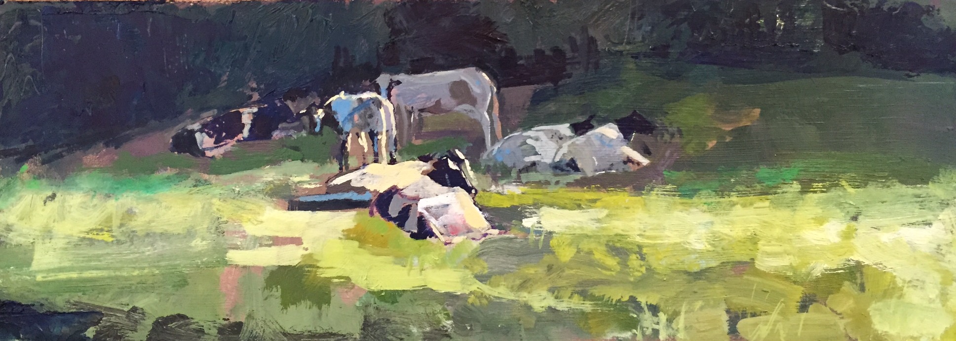 Cattle Warming, oil on board,, 32 X 12 cm